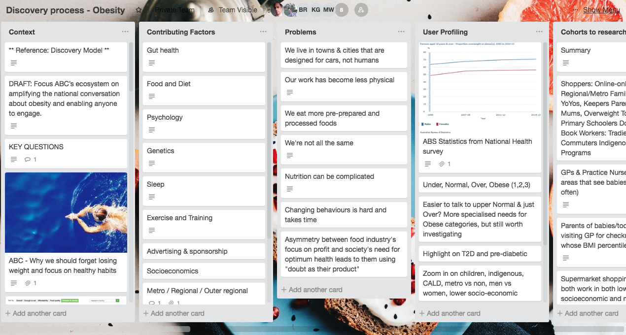 By mobilising a multidisciplinary team to use user-centred methods and work in agile ways, the project’s goal was to find ways that the ABC could make an impact on Australia’s obesity epidemic.