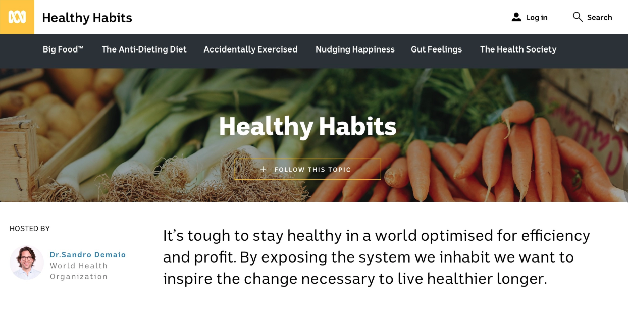 A prototype for a digital content service was developed. Named “Healthy Habits” this service would act as a hub for obesity related content at the ABC, and would exist before, during and after the main tentpole event.